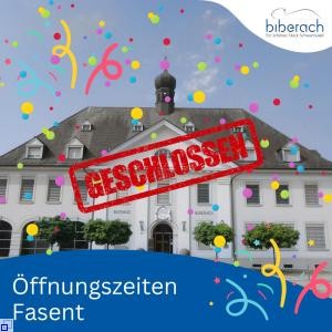 Am Rosenmontag, 16.02.2026 und Fasnachtsdienstag 17.02.2026, bleibt das Rathaus geschlossen.