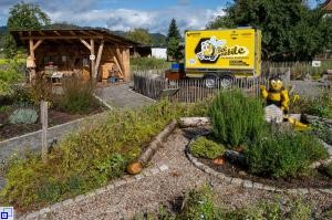 Nach knapp einem Jahr harter Arbeit erstrahlt der Garten in voller Pracht mit bienenfreundlichen Blumenbeeten in Wabenform und einem spannenden Bienenlehrpfad. Hier entstand eine kleine Paradiesoase, wo Besucher in die faszinierende Welt der Bienen eintauchen können: Selbst ein proWIN pro nature Bienenwagen ist vor Ort anzutreffen!