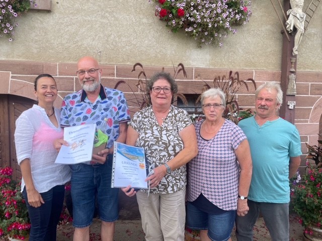 Ein weiterer schöner Anlass fand am 4. September statt, als auf dem Schüle-Hof in Prinzbach eine weitere Ehrung vorgenommen wurde. Nach einem gemütlichen Beisammensein am Mittagstisch erhielten das Ehepaar Corinne Pfitzer und Hans Thelen ihre urkundliche Anerkennung für 35 Aufenthalte im malerischen Prinzbach. Das Ehepaar genießt die Liebe zur Natur und Kultur sowie die Gastfreundschaft und Verbundenheit auf dem Schüle-Hof in vollen Zügen. Als Zeichen dieser Treue überreichte die Gemeinde Biberach ebenfalls ein Gastgeschenk.
