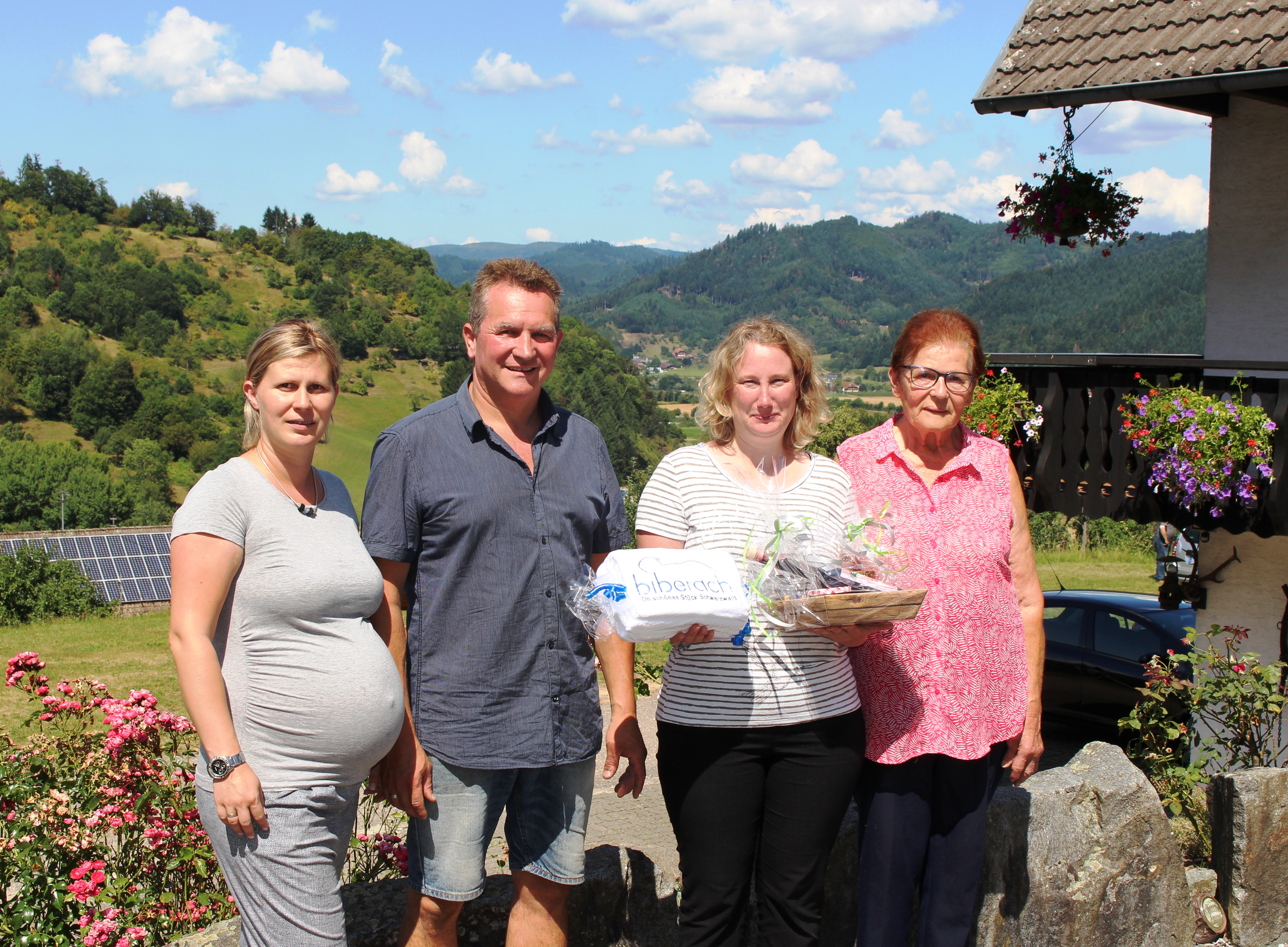 Die Ehrungen setzen sich auf dem Schüle-Hof fort. Am Freitag, den 30. August, wurde Gudrun Kuhrau für ihren 35. Besuch geehrt, begleitet von ihren beiden Söhnen und Schwiegertöchtern. Ein Zitat von Frau Kuhrau lautet: „Ich genieße die Ruhe der idyllischen Umgebung und die Gastfreundschaft der Familie Schüle.“ Die Gemeinde Biberach und die Familie Schüle feierten diesen besonderen Moment. Neben einer Urkunde und einem Präsent der Gemeinde erhielt Frau Kuhrau auch einen liebevoll zusammengestellten hofeigenen Geschenkkorb vom Schüle-Hof.