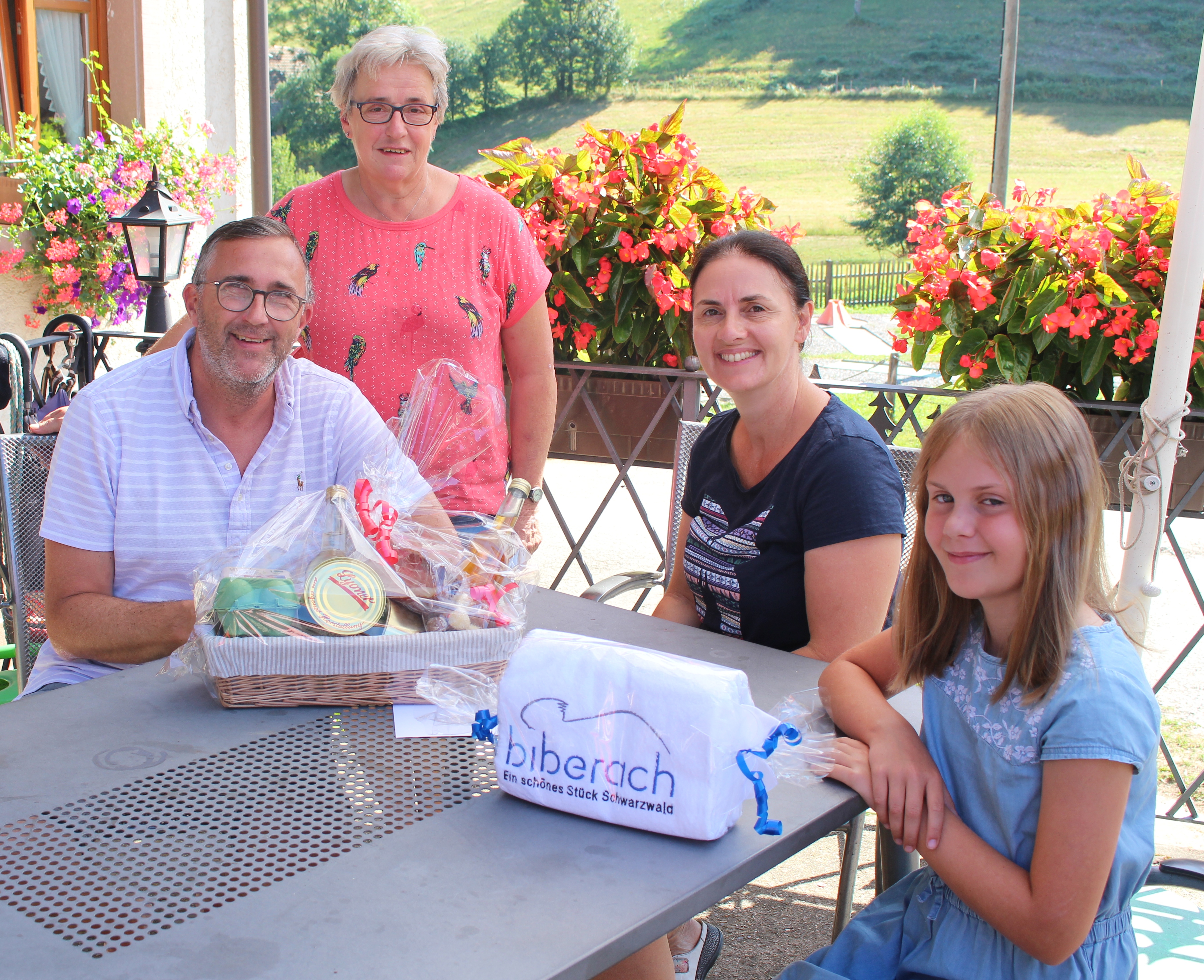 Als Dankeschön für die Treue zum Ferienort wurde Margareta Weiden nun geehrt. Stellvertretend für die Gemeinde Biberach überreichte die Mitarbeiterin der Tourist-Information, Susanne Brückner, eine Urkunde und einen Präsentkorb mit regionalen Spezialitäten. Ein Regenschirm und Handtücher mit dem Biberacher Gemeindelogo ergänzten das Geschenkpaket. Auch die Gastgeberfamilie Rehm schloss sich den Dankesworten an.
