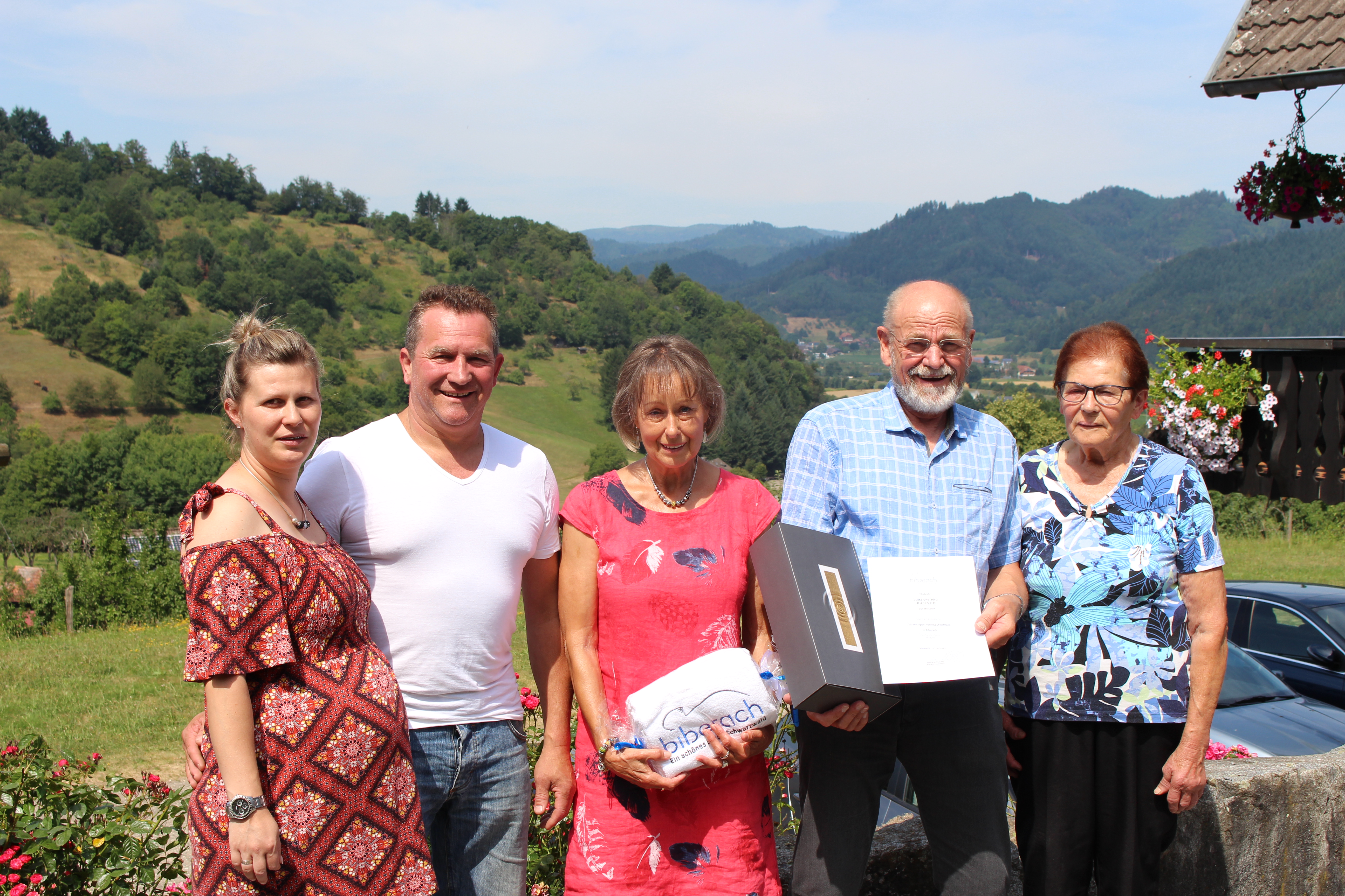 Das Ehepaar Bausch aus Hoisdorf verbringt ihren 25. Aufenthalt auf dem „Breighof“ im ruhig gelegenen Erzbach in Biberach. Für diese Treue erhielten sie eine Ehrung von der Gemeinde.