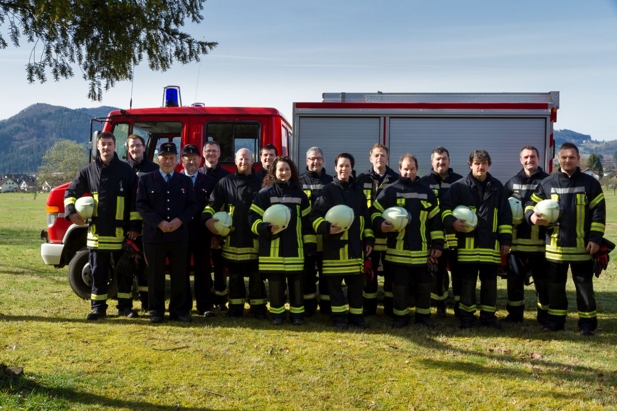 Namen der Personen von links nach rechts: Abteilungskommandant Huber Pirmin, Stellv.- Abteilungskommandant Huber Gerhard, Alterskamerad Schätzle Karl, Alterskamerad Herrmann Josef, Haas Martin, Vitt Ramon, Becherer Frank, Fix Jenny, Echle Thomas, Cunico Sabrina, Herrmann Thomas, Beck Anton, Schmidt Josef, Dorner Josef, Becherer Markus, Rappenecker Martin - Nicht Anwesend sind: Echle Christof, Leppert Sebastian, Haas Mathias